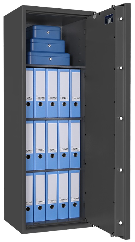 - Взломостойкий сейф Format Lyra-14.EL протестирован на защиту от профессионального грабежа и располагает сертификатом на взломостойкость класса Grade 1 по евро-стандарту EN 1143-1 (система ECB•S), соответствующую классу II по российскому стандарту ГОСТ Р 50862-2012.